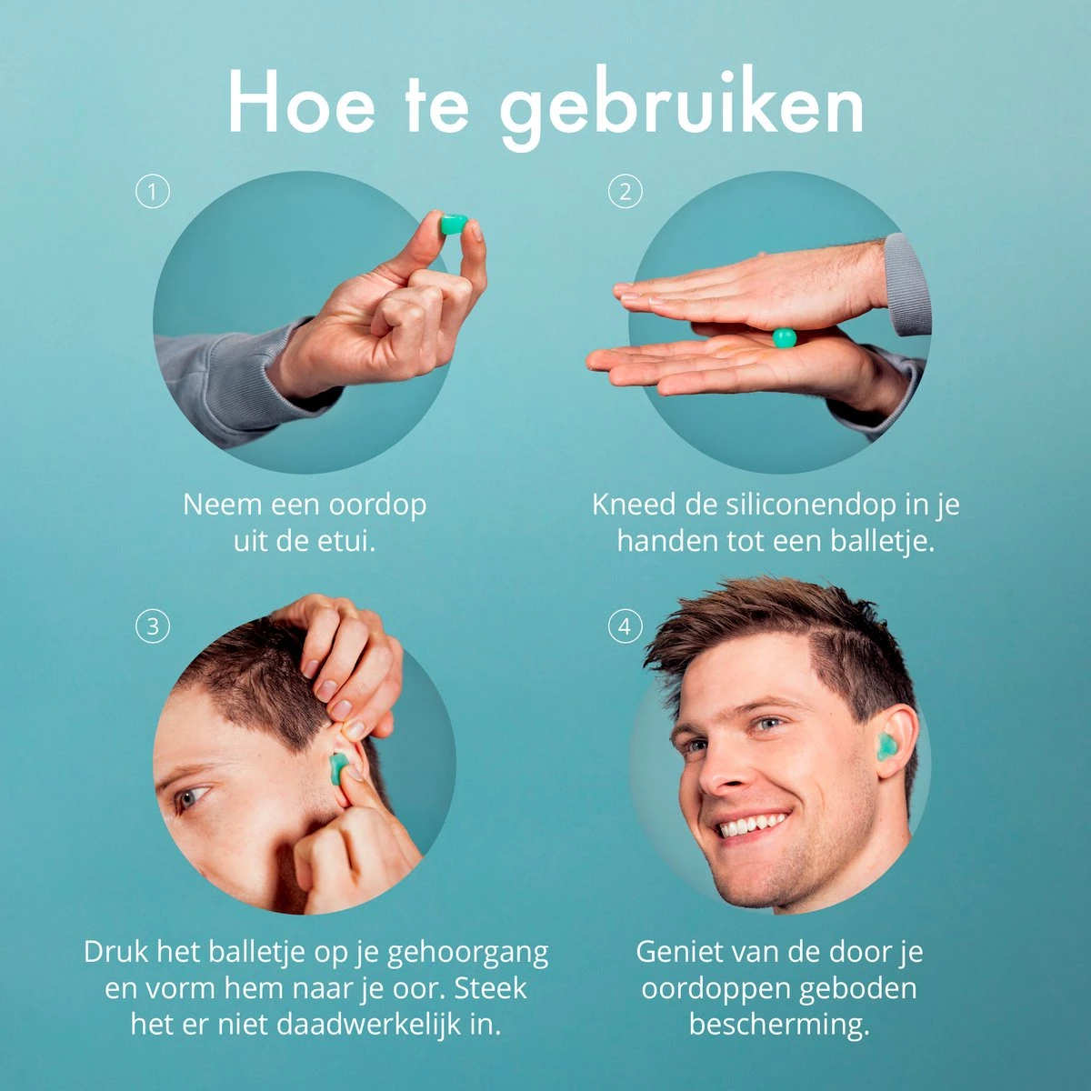 De SoftSilicone is het oordopje dat perfect past en ideaal is voor elke situatie. Verwacht oordopjes die net zo goed voor je oren zorgen als jij. Door het gebruik van aloë vera zijn de zachte siliconen voedend voor je huid. Dankzij het antibacteriële zilver dat ze bevatten zijn ze ook hygiënischer dan andere producten. In het extra meegeleverde reisetui kun je gebruikte en ongebruikte oordopjes gescheiden van elkaar bewaren, wat ook bijdraagt aan de hygiëne van de oordopjes. Dit, in combinatie met de demping tot 28dB, zorgt ervoor dat je oren goed beschermd zijn.