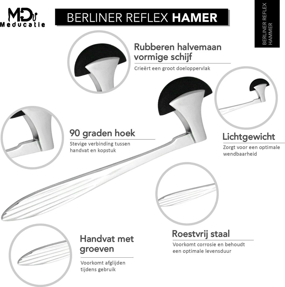 De berliner reflexhamer is een veel gebruikte metalen hamer bij reflexonderzoek.