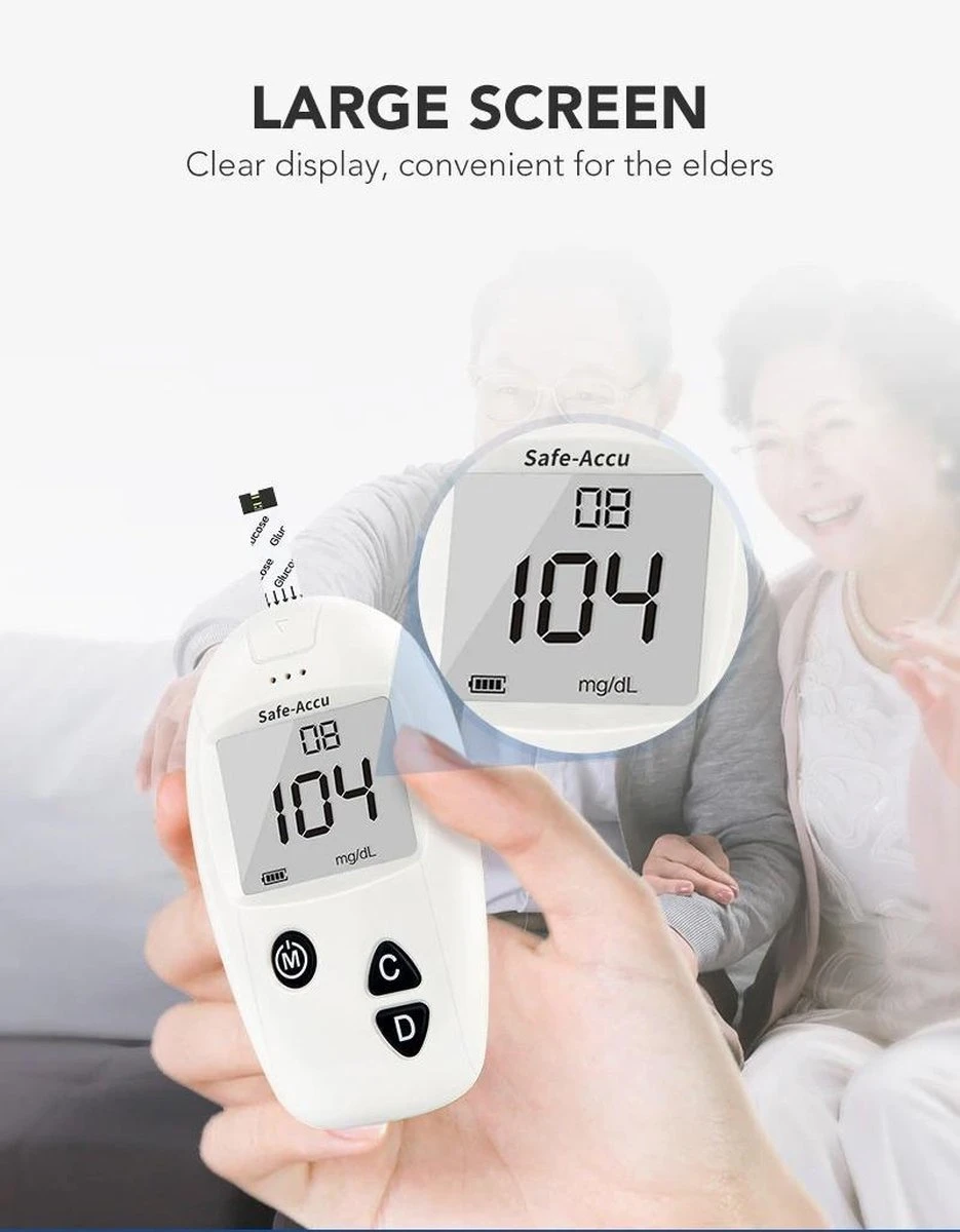 ✅ Grote display – De glucosemeter is voorzien van een grote display, die de testresultaten duidelijk weergeeft.