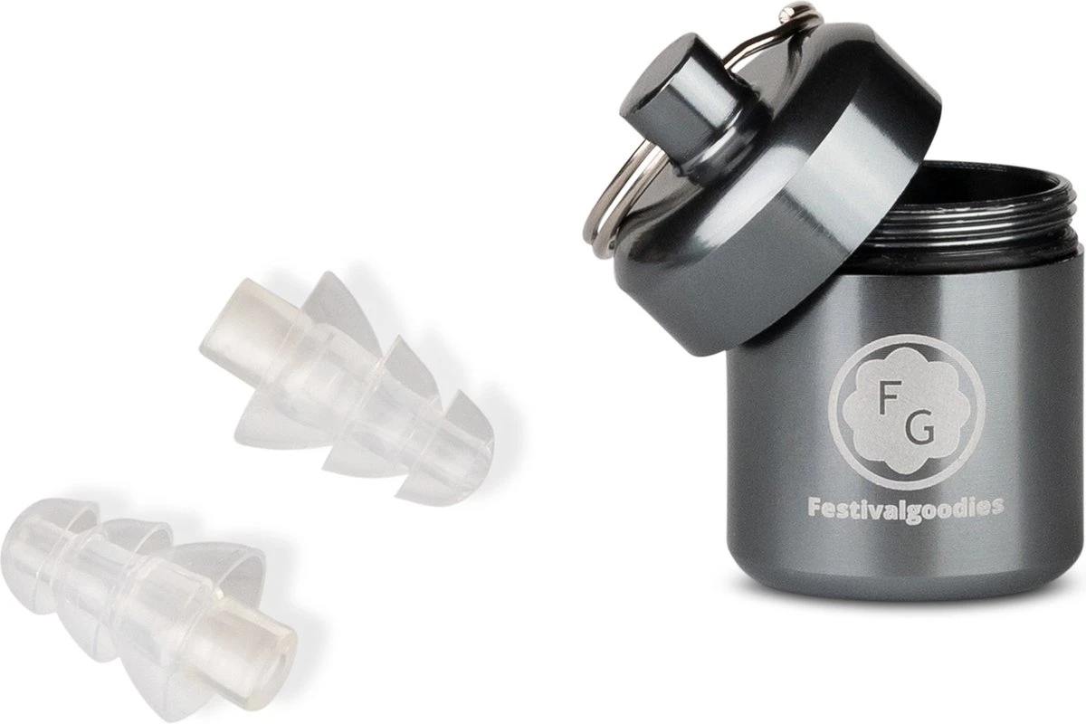 Perfecte zilvere oordoppen voor op jou festival met handige opbergcase.