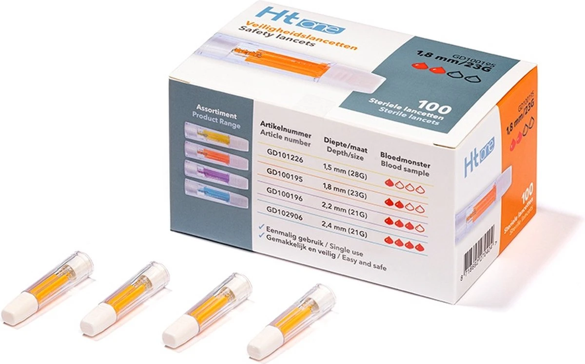 Productinformatie over de Ht One veiligheidslancetten 1,8mm