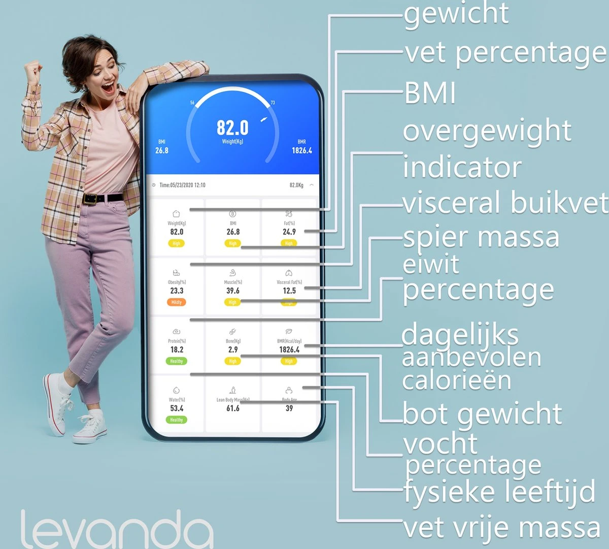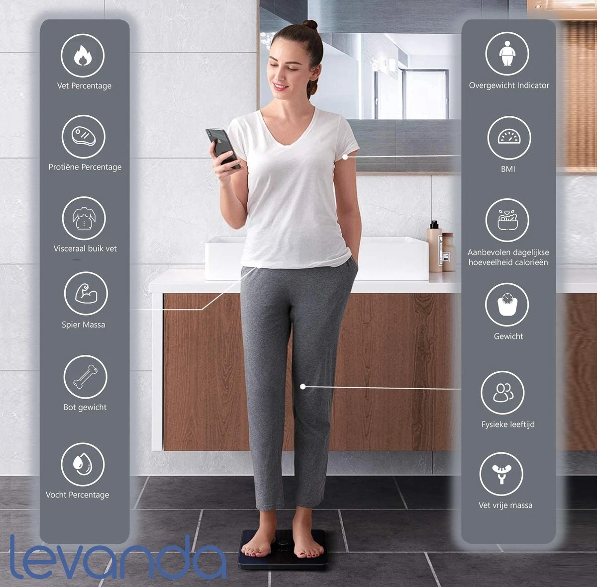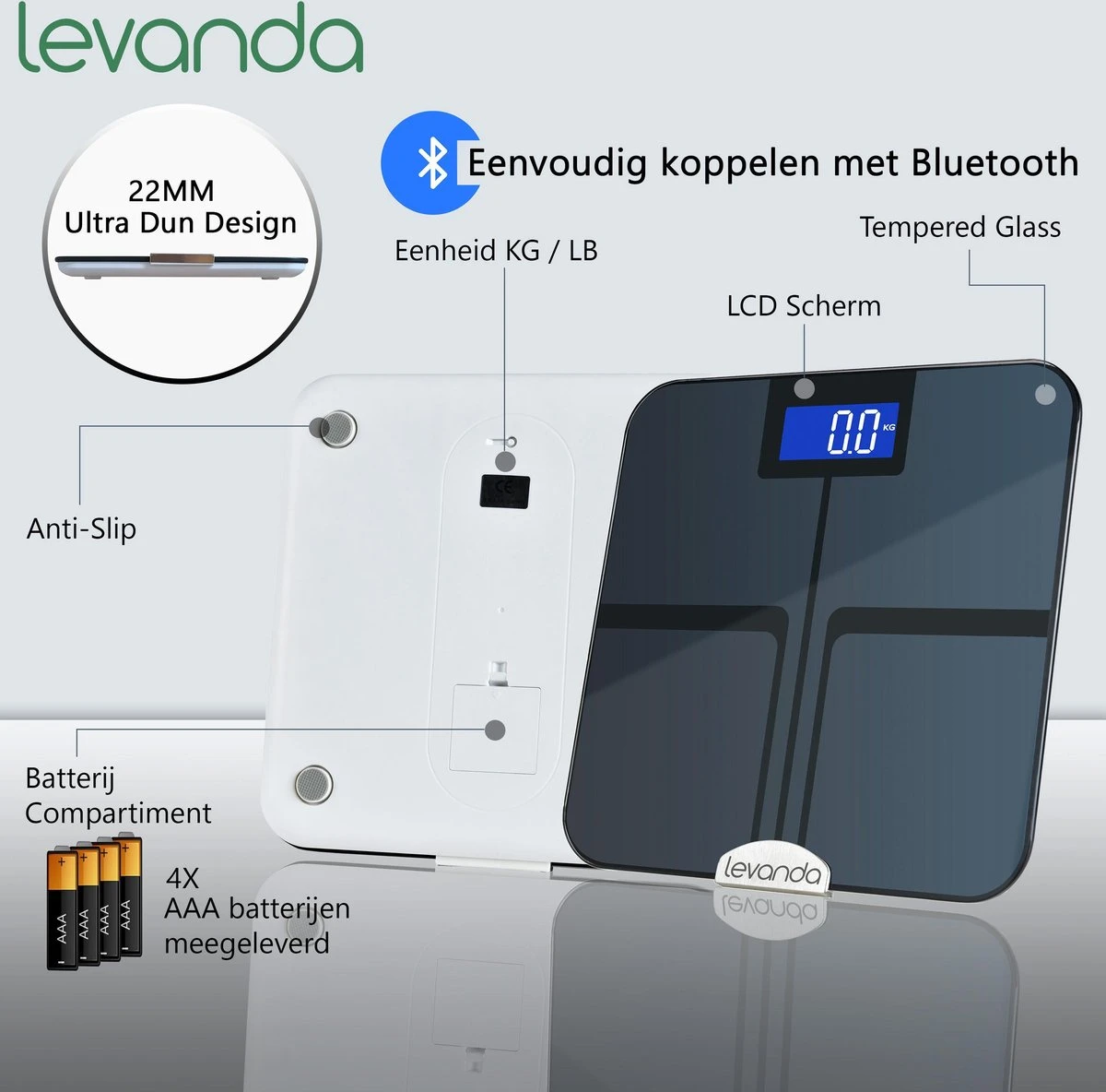De levanda digitale personenweegschaal met uitgebreide lichaamsanalyse vertelt je zoveel meer als je gewicht en vetpercentage.