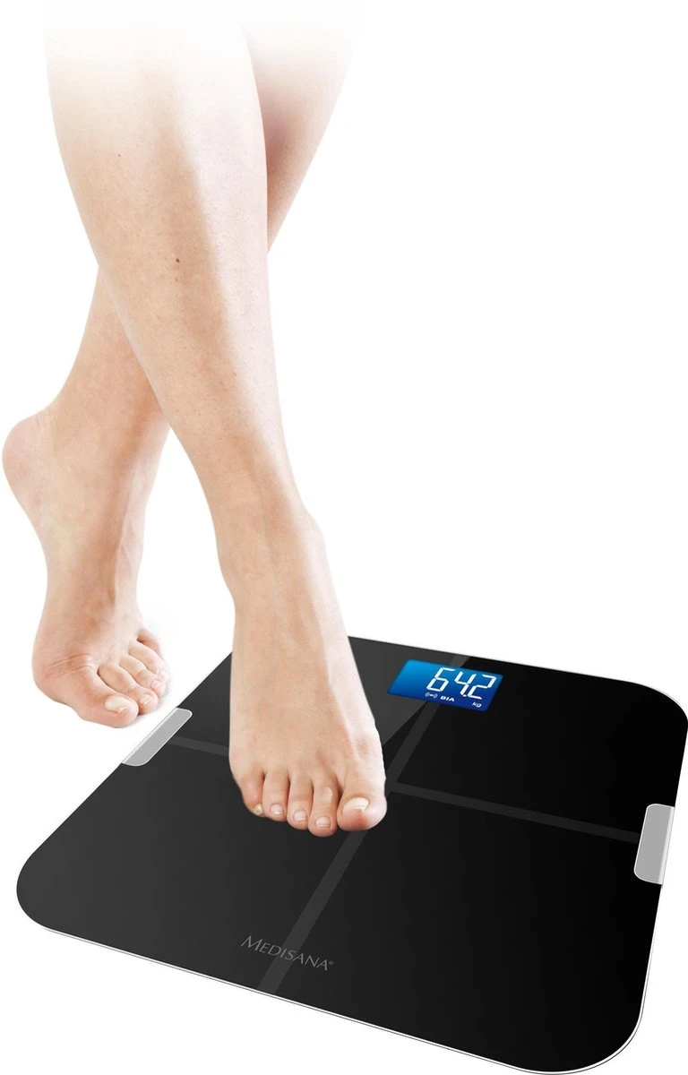 Deze prachtige donker glanzende weegschaal van Medisana levert absolute topprestaties. De Medisana BS 440 Connect Lichaamsanalyseweegschaal meet meer dan enkel je lichaamsgewicht en deze nauwkeurige alleskunner beschikt bovendien over de nieuwste Bluetooth-Smart-verbinding voor je mobiele apparaten waardoor je een compleet nieuwe kijk zult hebben op gewicht managen.