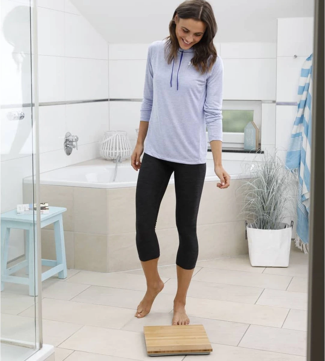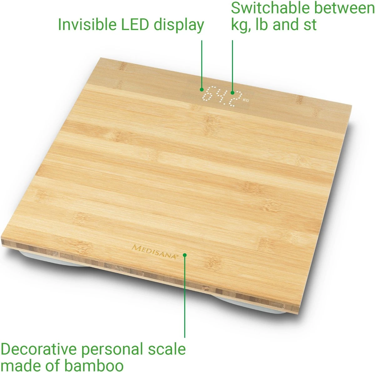 - Personenweegschaal met een hoogwaardig oppervlak van bamboe voor een aangenaam gevoel aan de voeten