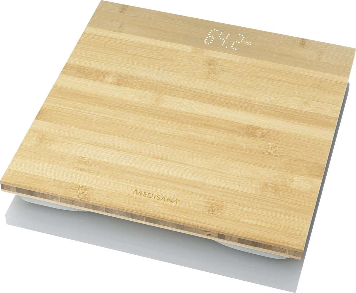 Nooit meer koude voeten op de weegschaal met deze bamboe weegschaal van Medisana! De Medisana PS 440 personenweegschaal heeft een sta oppervlak van echt bamboe. Dit materiaal voelt heel fijn en warm aan je blote voeten. Daarnaast is het echt een eyecatcher in je badkamer!