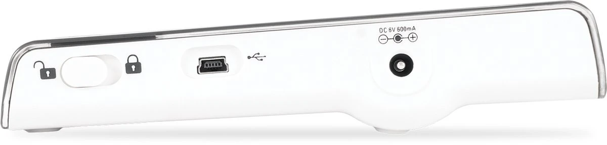 - Werkt op batterijen en is ook geschikt voor oplaadbare batterijen. Adapter meegeleverd