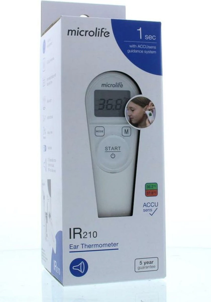 Microlife IR 210 is een nauwkeurige en betrouwbare (klinisch gevalideerd) infrarood oorthermometer. Het meten via het gehoorkanaal zorgt voor een betrouwbare, snelle en pijnloze temperatuurmeting. Het meetbereik ligt tussen de 0 – 100°C, meet eenheid: 0.1 °C. De meetnauwkeurigheid tussen de 35.0 – 42.0 °C is ±0.2 °C.