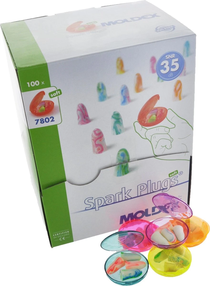 Oordoppen zijn onmisbaar tijdens een festival of muziekevenement. Ze beschermen je oren tegen gehoorschade. De oordopjes zijn gemaakt van zeer goede kwaliteit en hebben een gemiddelde dempingswaarde van SNR 35 dB(A). Aangezien ze uit kunstschuim bestaan, zijn ze comfortabel om te dragen. Moldex Spark plugs soft in pocket pack per 2 paar verpakt. Deze doos bevat 100 plastic doosjes in verschillende kleuren.