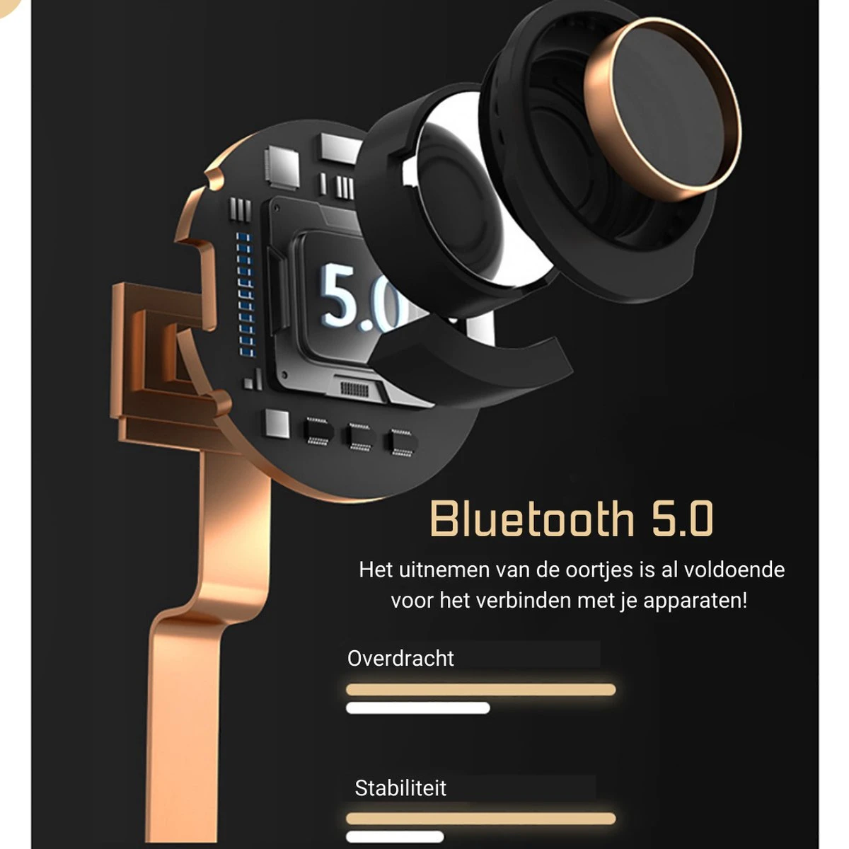 ● Bluetooth 5.0: Door de nieuwe versie van bluetooth 5.0 beschik je over de snelst mogelijke koppeling, haal de oortjes uit de oplaadcase en ze zijn verbonden!