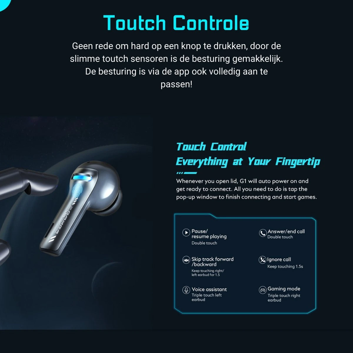 Focus tijdens het gamen of werken? Met deze oordopjes wordt het omgevingsgeluid met gemak gedempt! Door het totaal van 4 microfoons wordt omgevingsgeluid geblokkeerd en weg gefilterd wanneer je spreekt. Ook ideaal voor tijdens meetings en telefoongesprekken! Met bluetooth 5.2 is het uitnemen van de oortjes al genoeg om ze te verbinden met je favoriete apparaat. Gaan met een enkele keer opladen 24 uur lang mee met gebruik van de oplaadcase. Naast dit zijn er nog tal van andere handige functies, lees daarom snel verder!