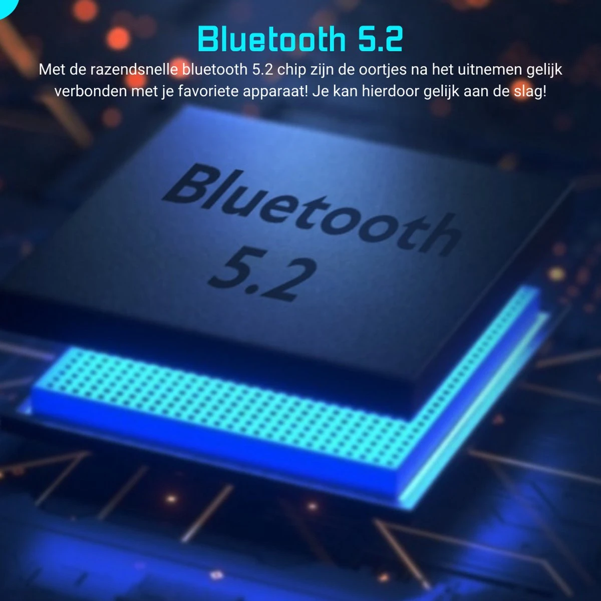 ● Bluetooth 5.2: Door de nieuwe versie van bluetooth 5.2 beschik je over de snelst mogelijke koppeling, haal de oortjes uit de oplaadcase en ze zijn verbonden! Ook komt er een koppelingsscherm naar voren op je apparaat, net zoals bij een van de grootste in de markt! (alleen zijn die een stuk duurder)