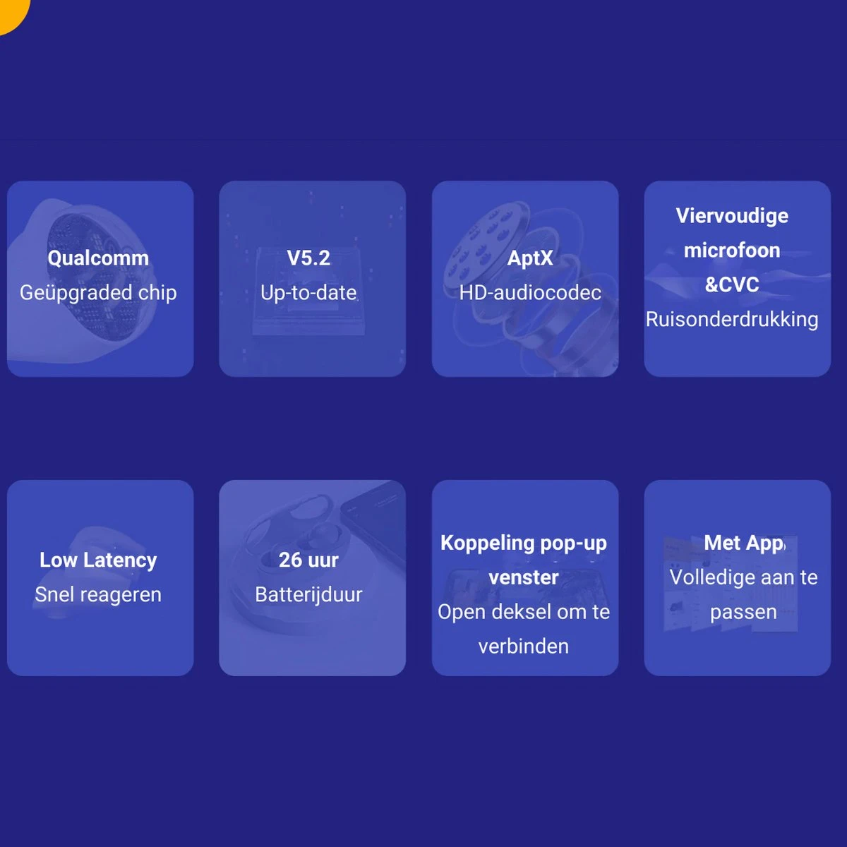 ● Bluetooth 5.2: Door de nieuwste versie van bluetooth 5.2 beschik je over de snelst mogelijke koppeling, haal de oortjes uit de oplaadcase en ze zijn verbonden! Ook komt er een koppelingsscherm naar voren op je apparaat, net zoals een van de grootste in de markt! (alleen zijn die een stuk duurder)