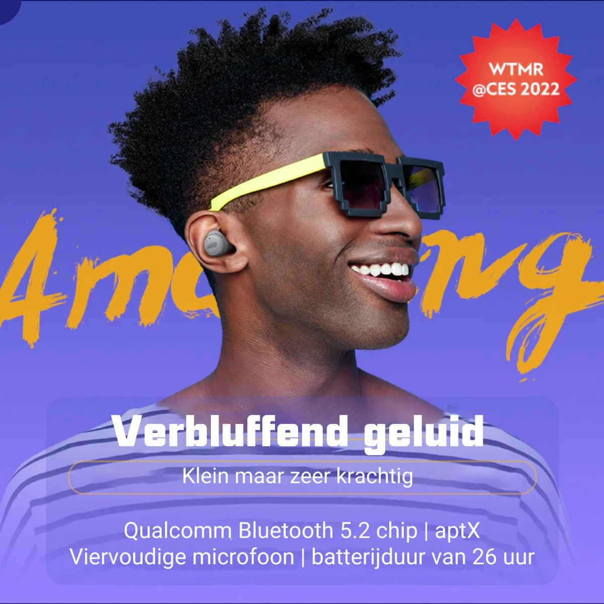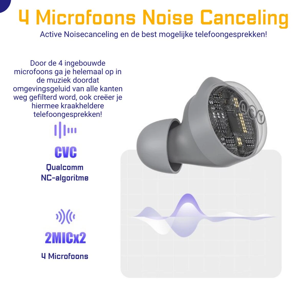 ● 4 Microfoon Noise Canceling: Met de 4 ingebouwde microfoons wordt omgevingsgeluid van elke richting opgevangen en geblokkeerd, de best mogelijke muziek beleving!