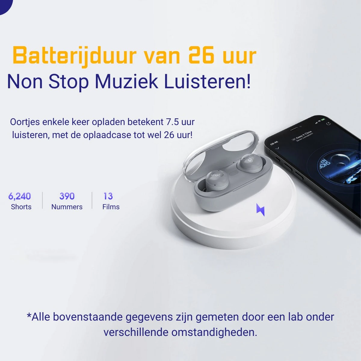 ● 26 Uur Gebruik: Na volledige oplading zijn deze oortjes tot wel 26 lang uur te gebruiken, dit is dus niet de stand-by batterijduur! 26 uur non-stop luisteren naar je favoriete platen!