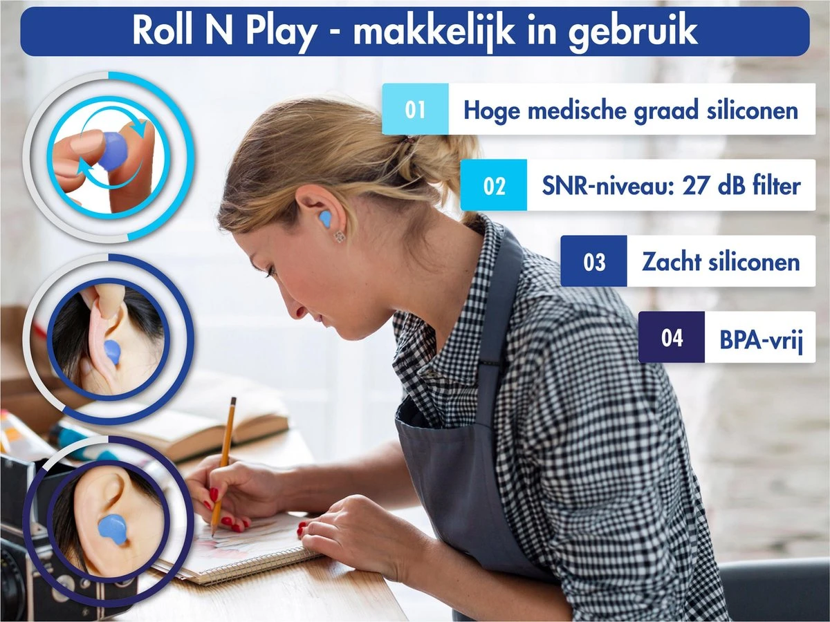 Na een 3-jarig lang onderzoek zijn deze comfortabele oordopjes ontworpen. Het perfecte balans tussen de siliconen maakt ze zacht, vormbaar, herbruikbaar én filtert zo de meest vervelende geluiden. Normale geluiden zijn nog wel hoorbaar waardoor jij in alle behoeften bent voorzien.