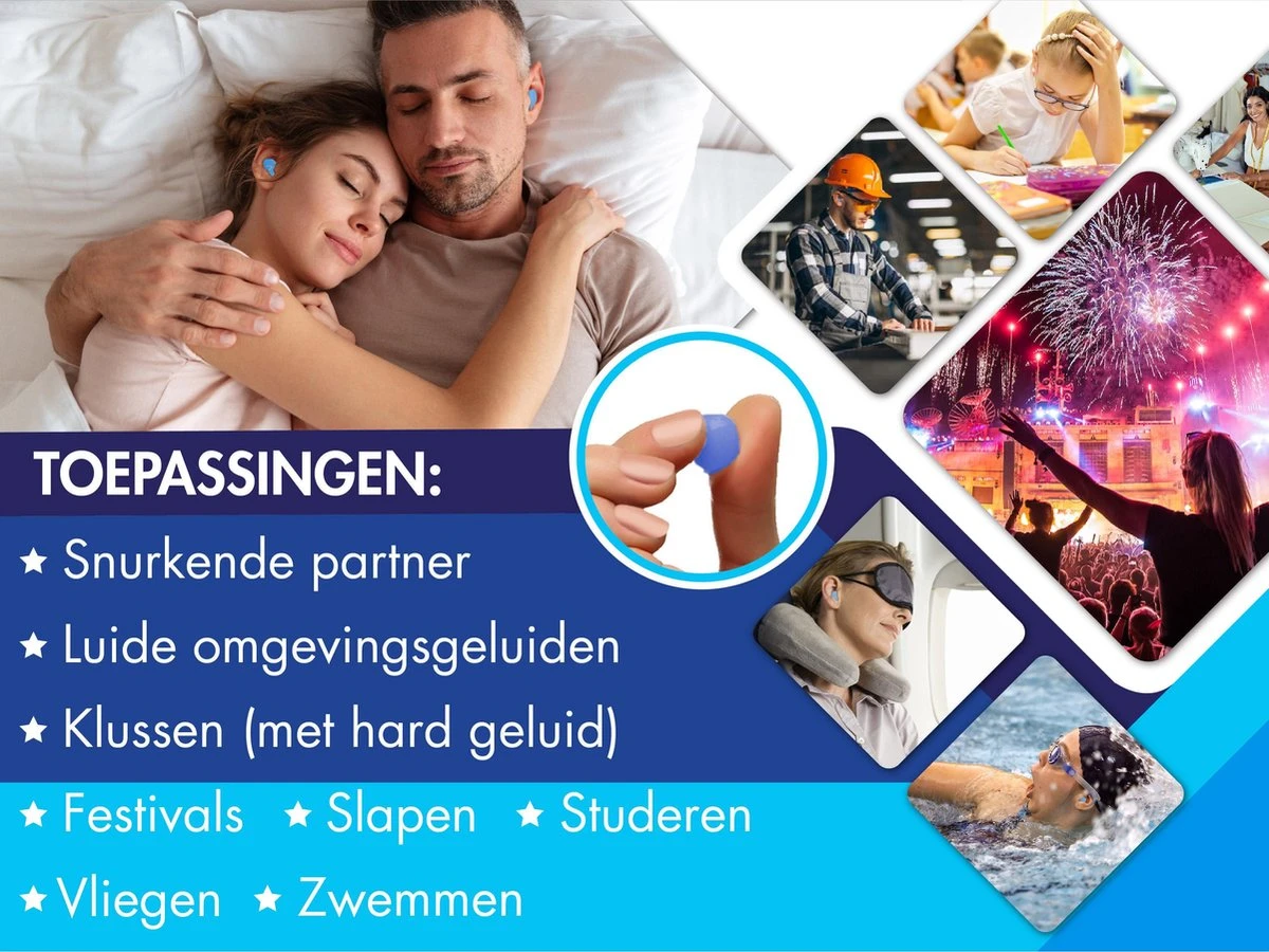 Zoals beloofd kunnen Numsy’s earplugs voor meerdere doeleinden worden gebruikt. Ook zijn ze te gebruiken voor slapen, zwemmen, tegen snurken, klussen, feesten, motorrijden, schietsporten en harde omgevingsgeluiden. Maak direct het reizen of studeren stukken aangenamer!