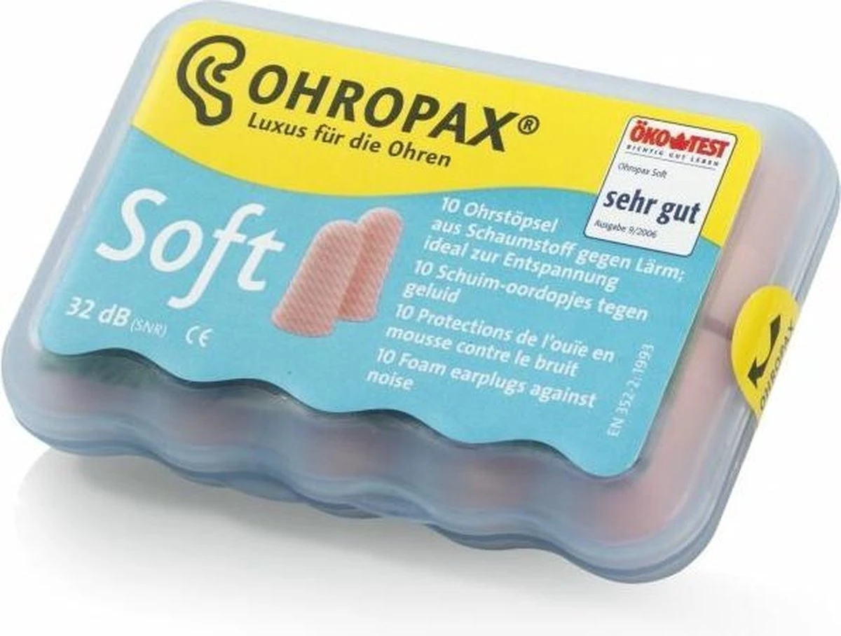Ohropax SoftOhropax Soft is een moderne en praktische vorm van gehoorbescherming die vele toepassingen kent. Op de werkplek, tijdens het klussen en wanneer het oor aan luide muziek wordt blootgesteld biedt Ohropax Soft de juiste bescherming. Uniek aan Ohropax Soft is dat deze ook beschermt tegen water en wind. De oordopjes zijn van huidvriendelijk PU-schuim.