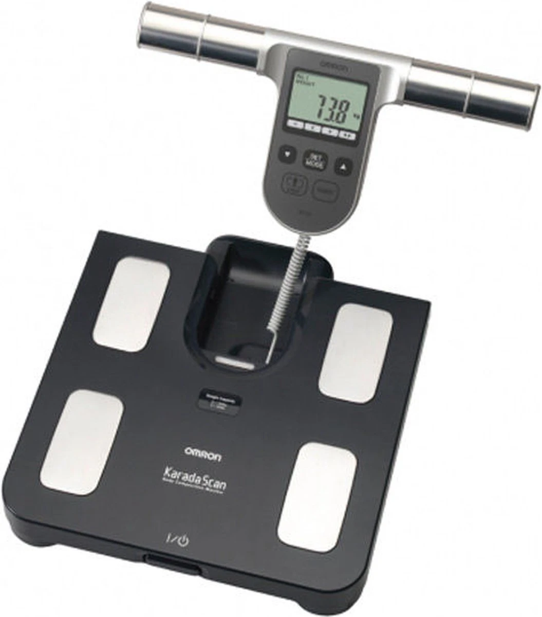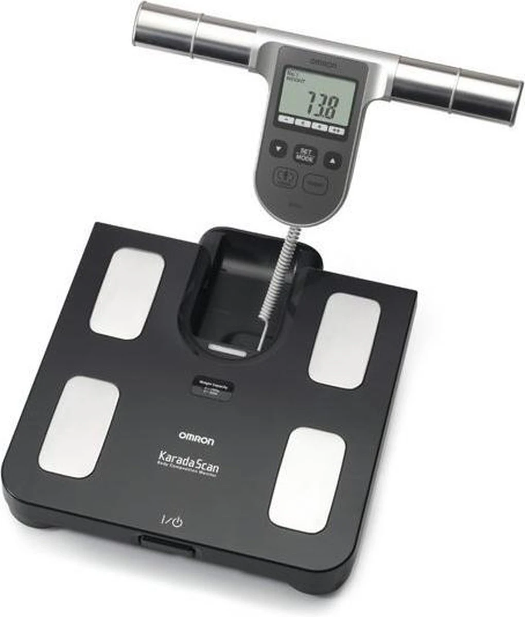 Bepaalt snel en op een gebruiksvriendelijke wijze lichaamsvetpercentage en visceraal vetpercentage door middel van een vierpuntsmeting, via handen en voeten. Geeft ook een classificatie van deze vetpercentages (laag, normaal, hoog, zeer hoog). Omron vetmeters: Preventie en behandeling zijn van essentieel belang. Het veranderen van uw voedingsgewoonten, afvallen, stoppen met roken en regelmatig lichaamsbeweging nemen kunnen een gunstige invloed hebben. Omron doet daarom meer dan het meten van bloeddruk. Er is een lichaamsvetmeter voor het bewaken van het lichaamsvetpercentage en er zijn Body Composition Monitors die wegen en het lichaamsvet meten. De nauwkeurige Omron stappentellers nodigen uit om meer te gaan bewegen. De Omron Body Composition Monitors geven snel en op een gebruiksvriendelijke manier informatie over de samenstelling van het lichaam. Het vetpercentage wordt bepaald aan de hand van de bio-elektrische impedantie waarbij een zwakke stroom door het gehele lichaam wordt gestuurd. Afhankelijk van het model wordt ook een aantal andere waarden getoond, zoals BMI, visceraal vet (=vet rond de organen in de buik, skeletspierpercentage (model Omron BF511) en basaal metabolisme. Eigenschappen van de Omron BF508: