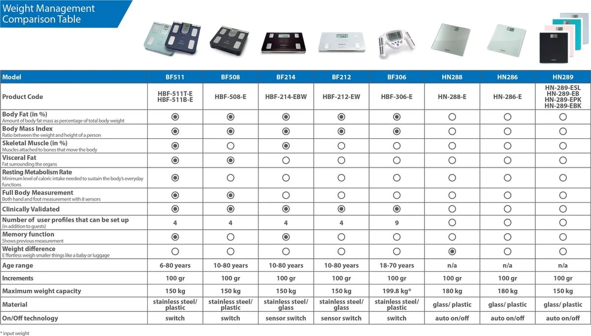 De OMRON HN289 personenweegschaal is een digitale weegschaal gemaakt van gehard glas. De weegschaal is leverbaar in 3 kleuren en weegt in stappen van 100 gr. tot max. 180kg.