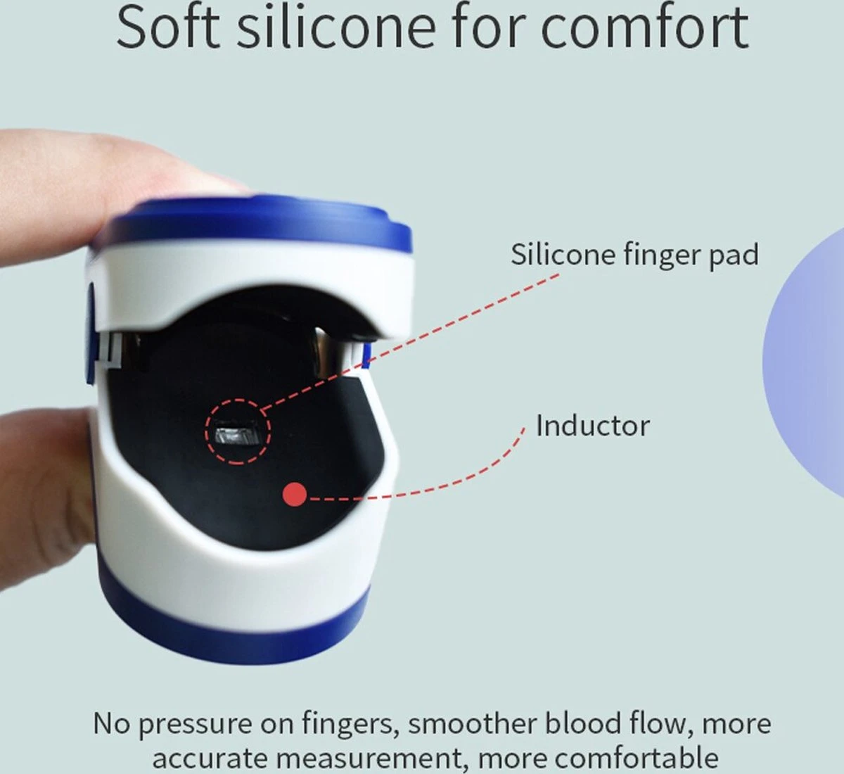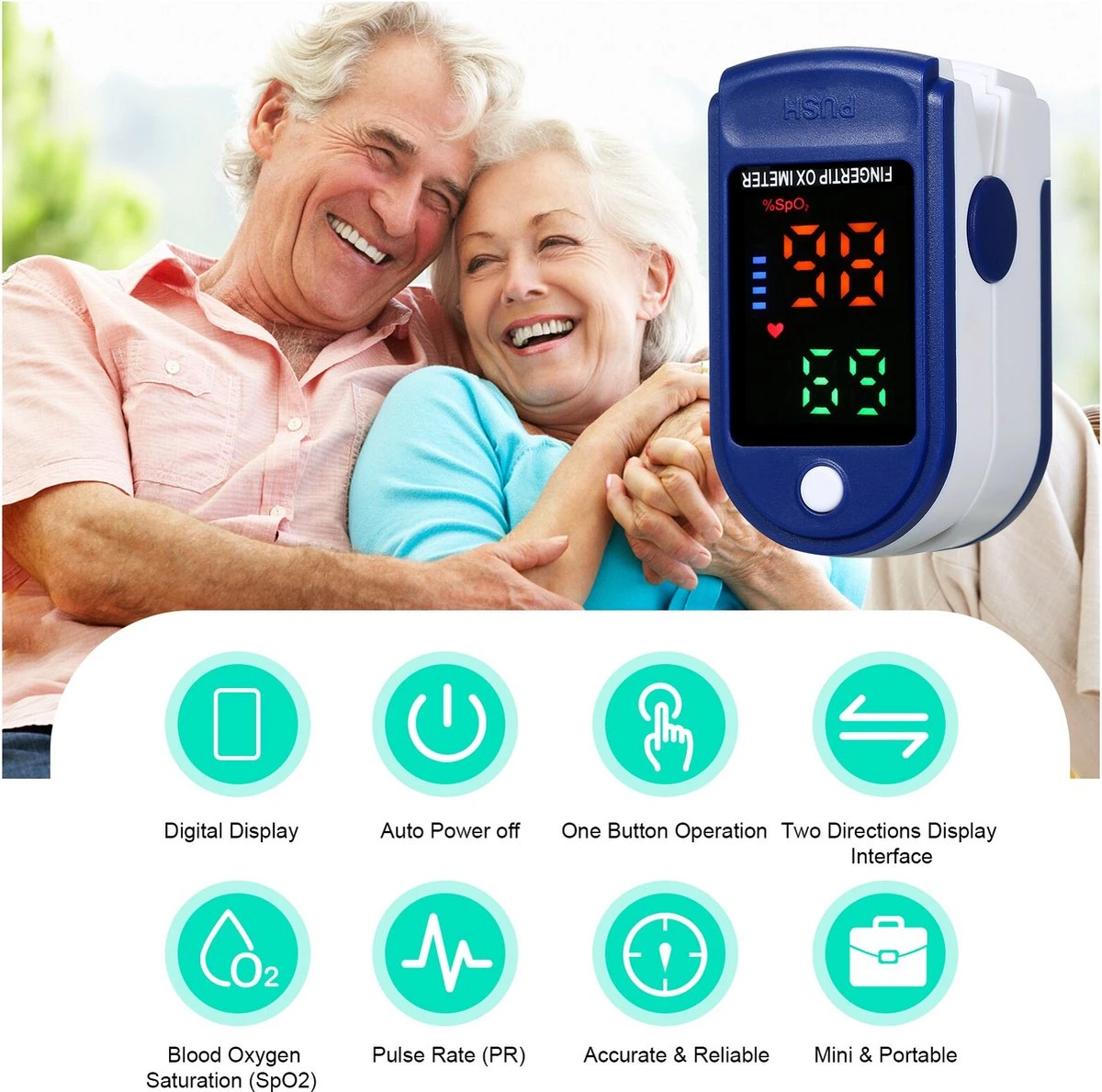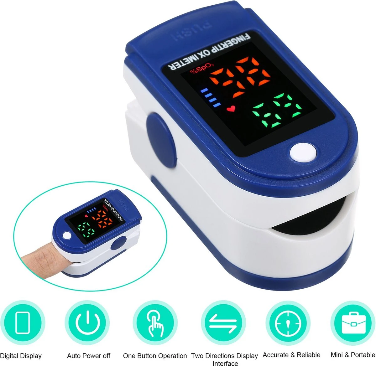 Een klein en licht apparaatje, bedoeld voor volwassenen en kinderen vanaf 4 jaar (vingerdikte minimaal 1 cm). De pulsoximetertest is niet-invasief en toont binnen enkele seconden het bloedtestresultaat, de hartslag en de perfusie-indexwaarde.