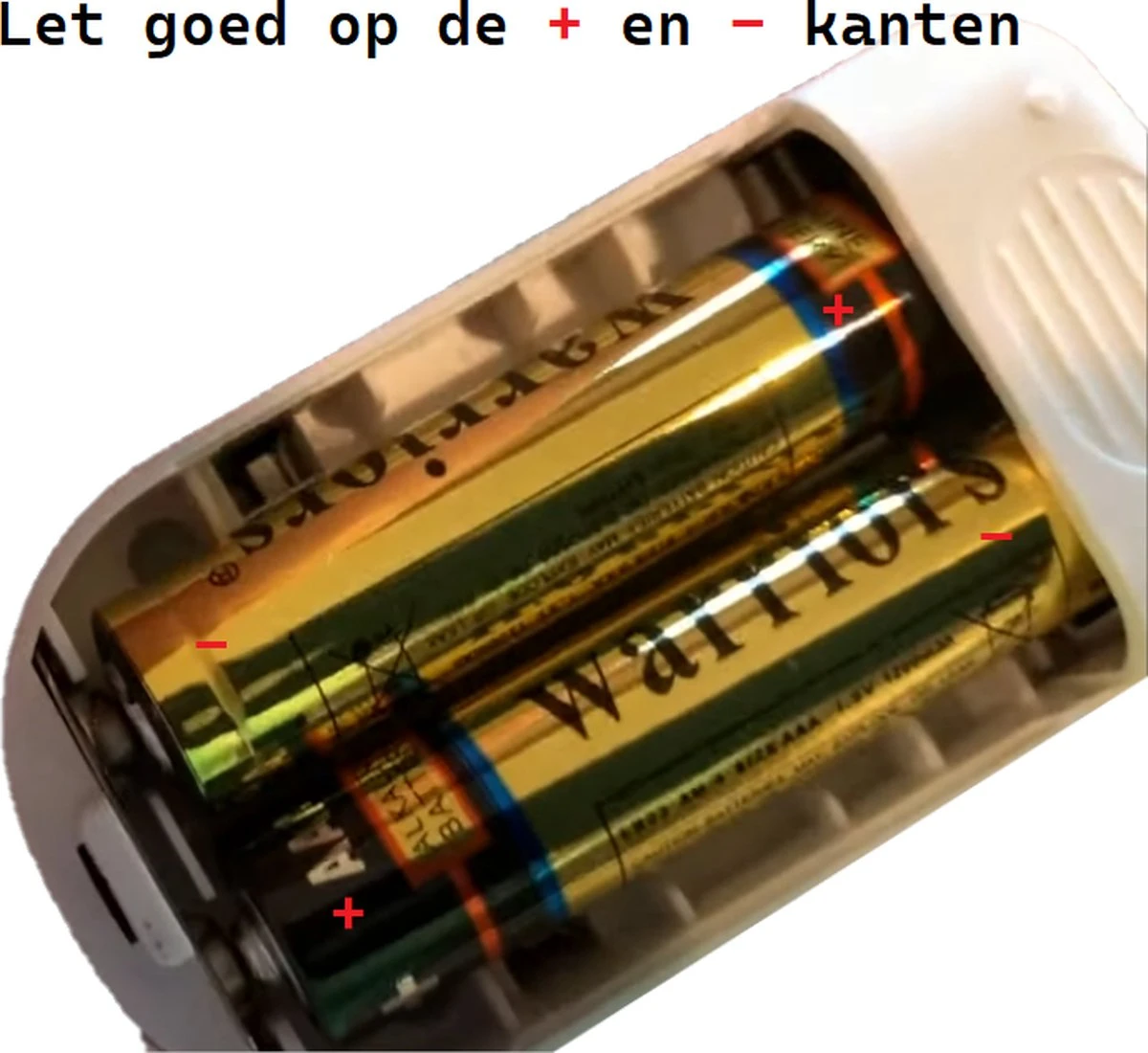 LET GOED OP de + plus en de – min kant van de batterijen, de ene kant is + naar – en andere kant is – naar +.