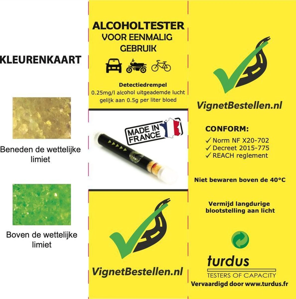 Deze alcoholtesters voldoen aan het Franse keurmerk NF X20-702!