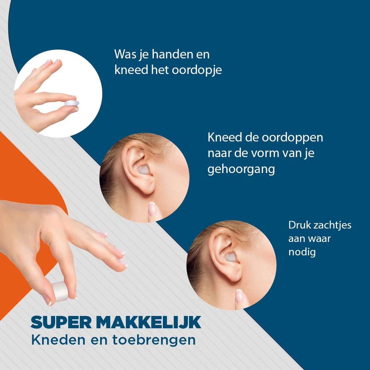 Wordt geleverd met 14 stuks herbruikbare oordoppen en een handig meeneem box, zodat je even voorruit kunt.
