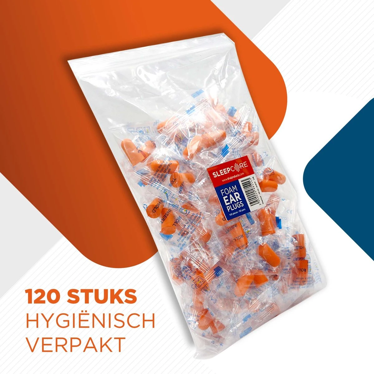 Wordt geleverd met 120 stuks oordoppen, extra hygiënisch doordat ze apart verpakt zijn.