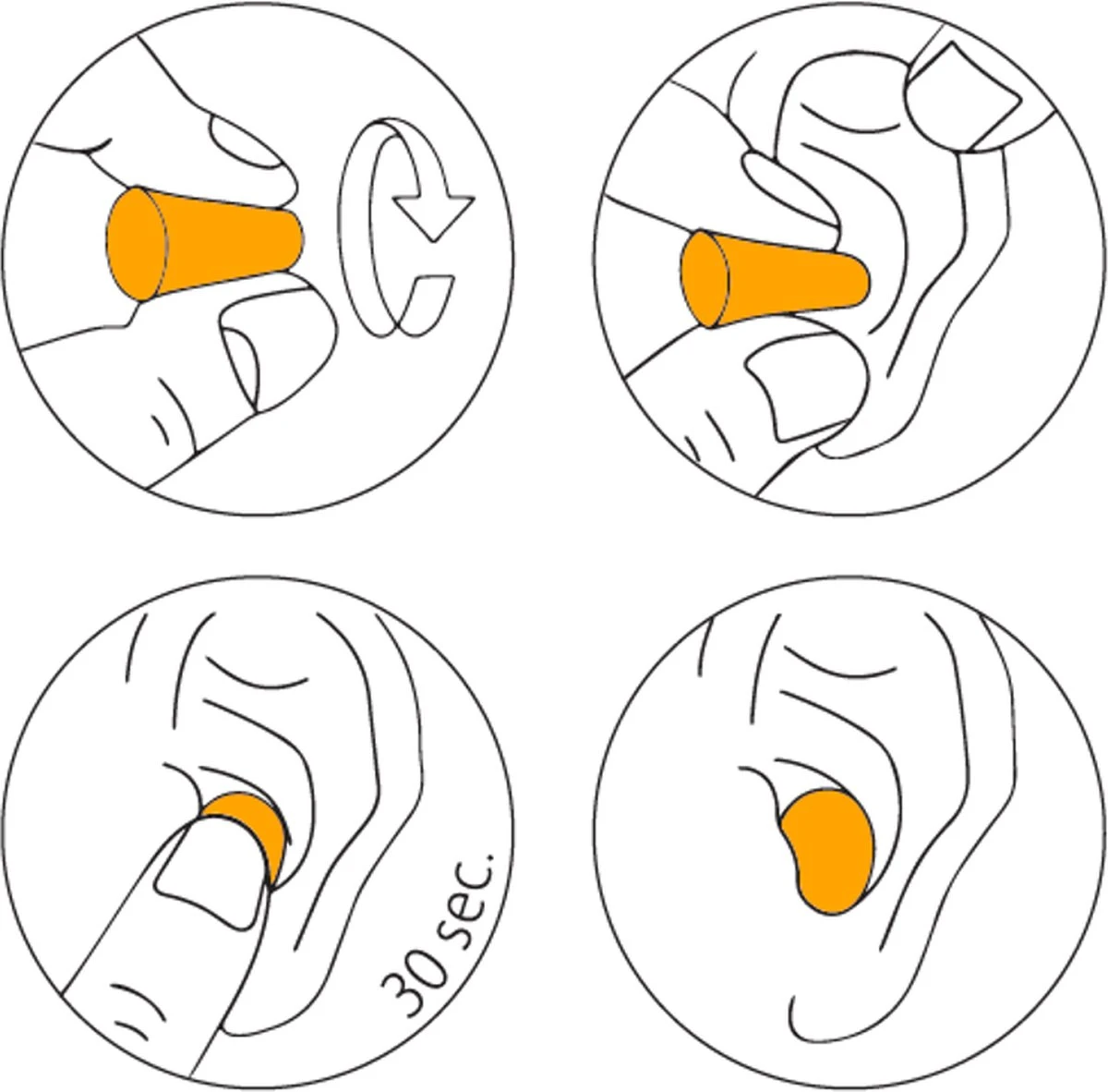 - Rol en druk het oordopje tussen duim en wijsvinger samen tot een gladde, kreukvrije cilinder.