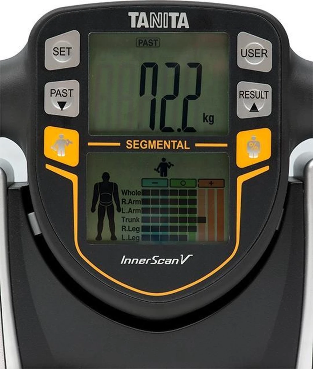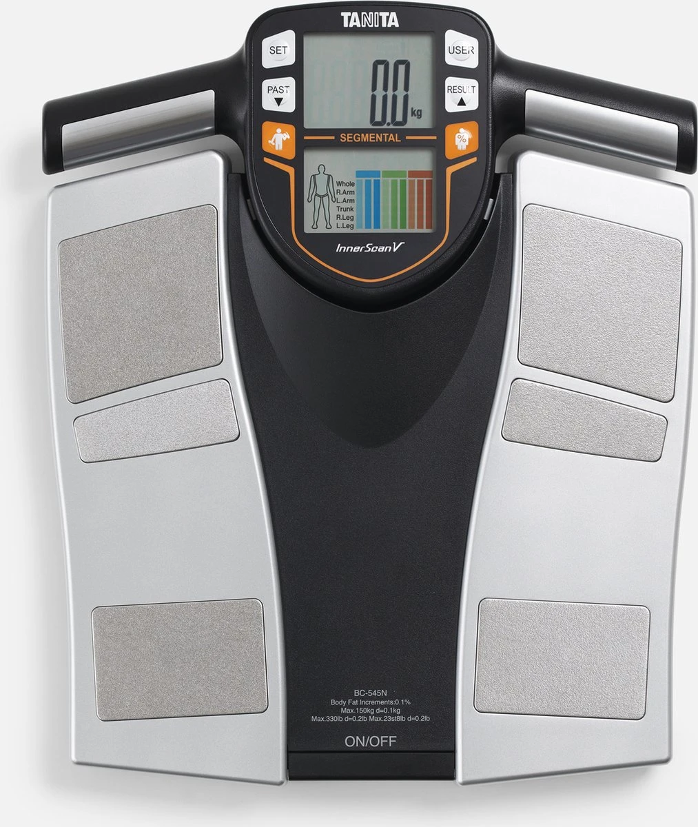 De TANITA BC-545N is een segmentale lichaamsanalyse weegschaal waarmee gebruikers binnen 15 seconden een uitgebreide analyse maken. Dit doen ze niet alleen voor hun algehele lichaamsgezondheid, maar ook per lichaamsdeel (torso, beide armen en beide benen). De resultaten bieden handvatten aan gebruikers om gerichter en accurater aan de slag te gaan met het verbeteren van de gezondheid en het monitoren van de fitness progressie.USP’s – Segmentale lichaamsanalyse weegschaal- Geïntegreerde displays in de handvatten – Monitort fitness progressie De segmentale lichaam analyseweegschaal meet het vetpercentage en de spiermassa van de vijf verschillende segmenten van het lichaam. Met deze inzichten kunnen gebruikers van de TANITA BC-545N hun trainingsprogramma gerichter insteken op de lichaamsdelen die extra aandacht behoeven. De TANITA BC-545N meet niet alleen heel nauwkeurig, maar ook zeer snel en eenvoudig. De handvatten van deze segmentale lichaamsanalyse weegschaal beschikken over geïntegreerde displays, waar de resultaten van een lichaamsanalyse direct op worden weergegeven.