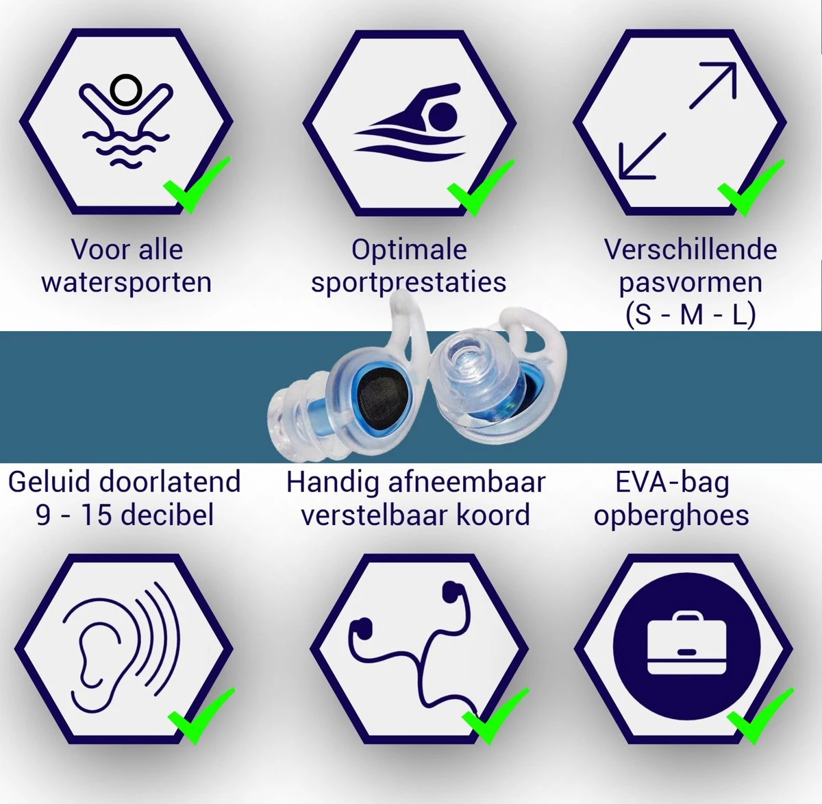 Voordelen van surf/zwem oordoppen: