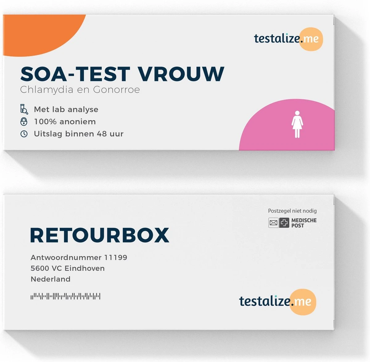 Er wordt getest op Chlamydia en Gonorroe. Dit zijn de meest voorkomende SOA’s. Uitslagen worden geautoriseerd door een arts-microbioloog. Meer uitleg vind je in de bijsluiter of bekijk de video op Youtube.