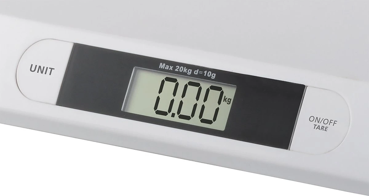 Dankzij de handige Tare-functie kan je het gewicht van een handdoek of deken van het weeggewicht afhalen. Je plaatst hiervoor eerst de handdoek op de weegschaal en drukt op de Tare-knop, de weegschaal zet zichzelf dan weer terug naar nul. Als je vervolgens je baby op de weegschaal legt, wordt alleen het gewicht van je baby weergegeven op het display.