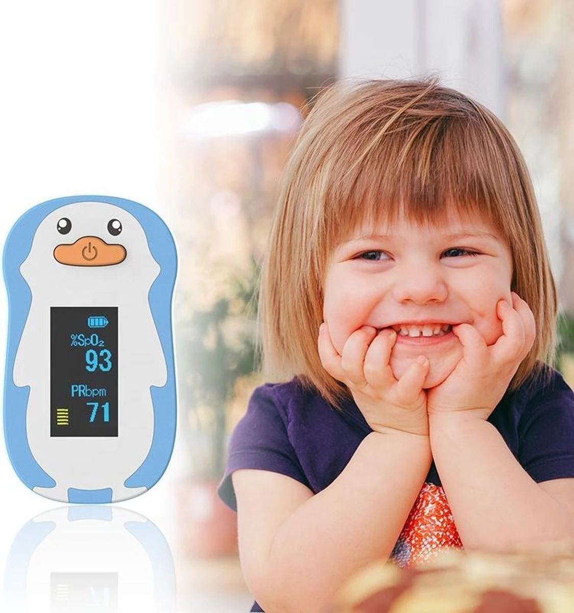 - Wat krijt ut: Pinguin-achtige pulsoximeter voor kinderen die uw kind aanspreekt. Een gratis sleutelkoord dat om de nek van uw kind kan worden gehangen en 2 gratis AAA-batterijen. Het professionele after-sales team zal u van dienst zijn.