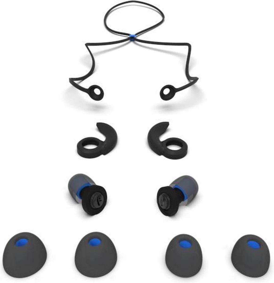 – 6x verwisselbare siliconen oordopjes in de maten small, medium en large.